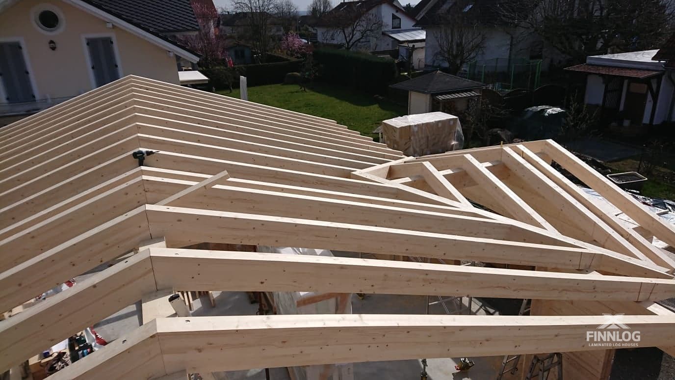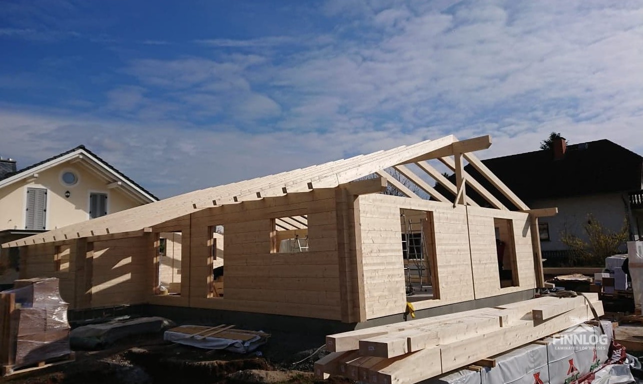 На місці будівництва працюють також спеціалісти компанії Finnlog, відомої своїми інноваційними підходами до будівництва дерев’яних будинків. Фахівці Finnlog контролюють процес монтажу клеєного бруса, забезпечуючи дотримання всіх технологічних вимог і стандартів якості.
