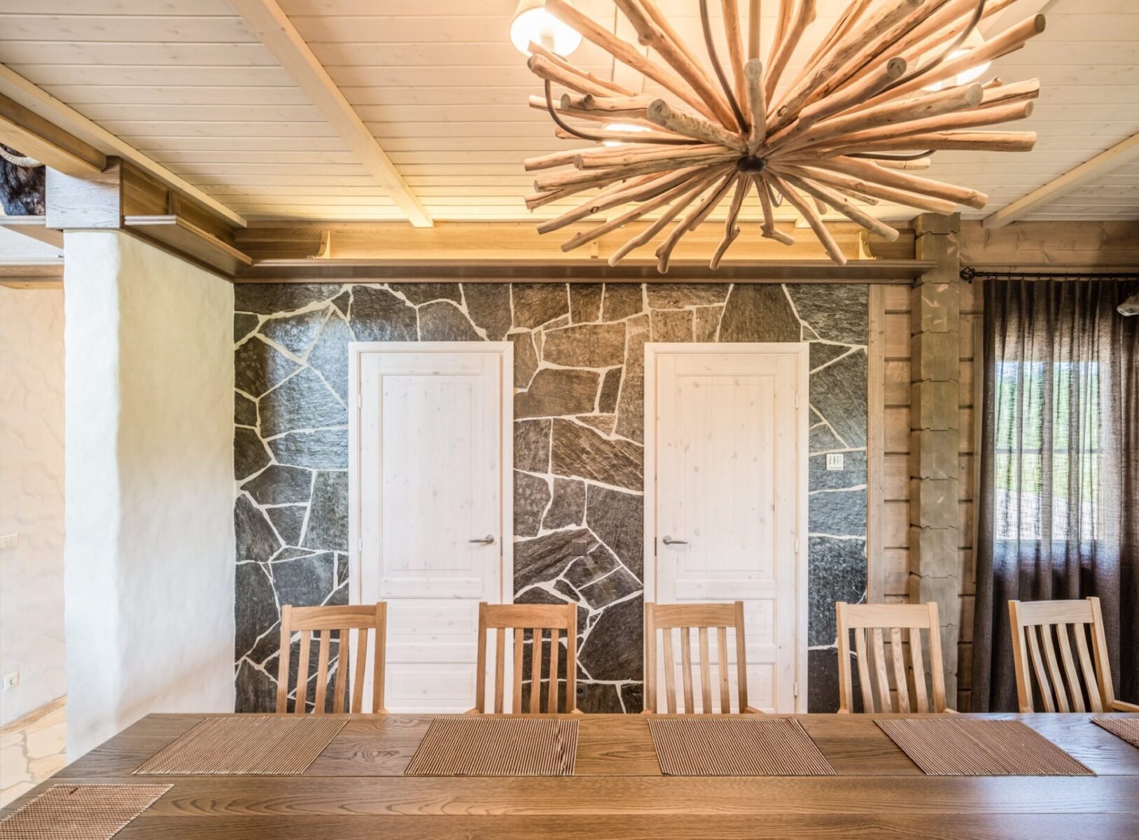 Внутрішній простір цього будинку наповнений світлом і простором. Широкі вікна впускають багато природного світла, створюючи відчуття відкритості та легкості. Кожна кімната дихає простором і зручністю, що робить будинок ідеальним для сімейного життя. Велика вітальня з панорамними вікнами, яка плавно переходить у їдальню і кухню, є центром будинку, де зручно проводити час із родиною або приймати гостей. Кімнати для дітей, спальні та ванні кімнати спроектовані з урахуванням сучасних вимог до комфорту, і водночас вони зберігають затишок та тепло традиційного дерев’яного будинку.