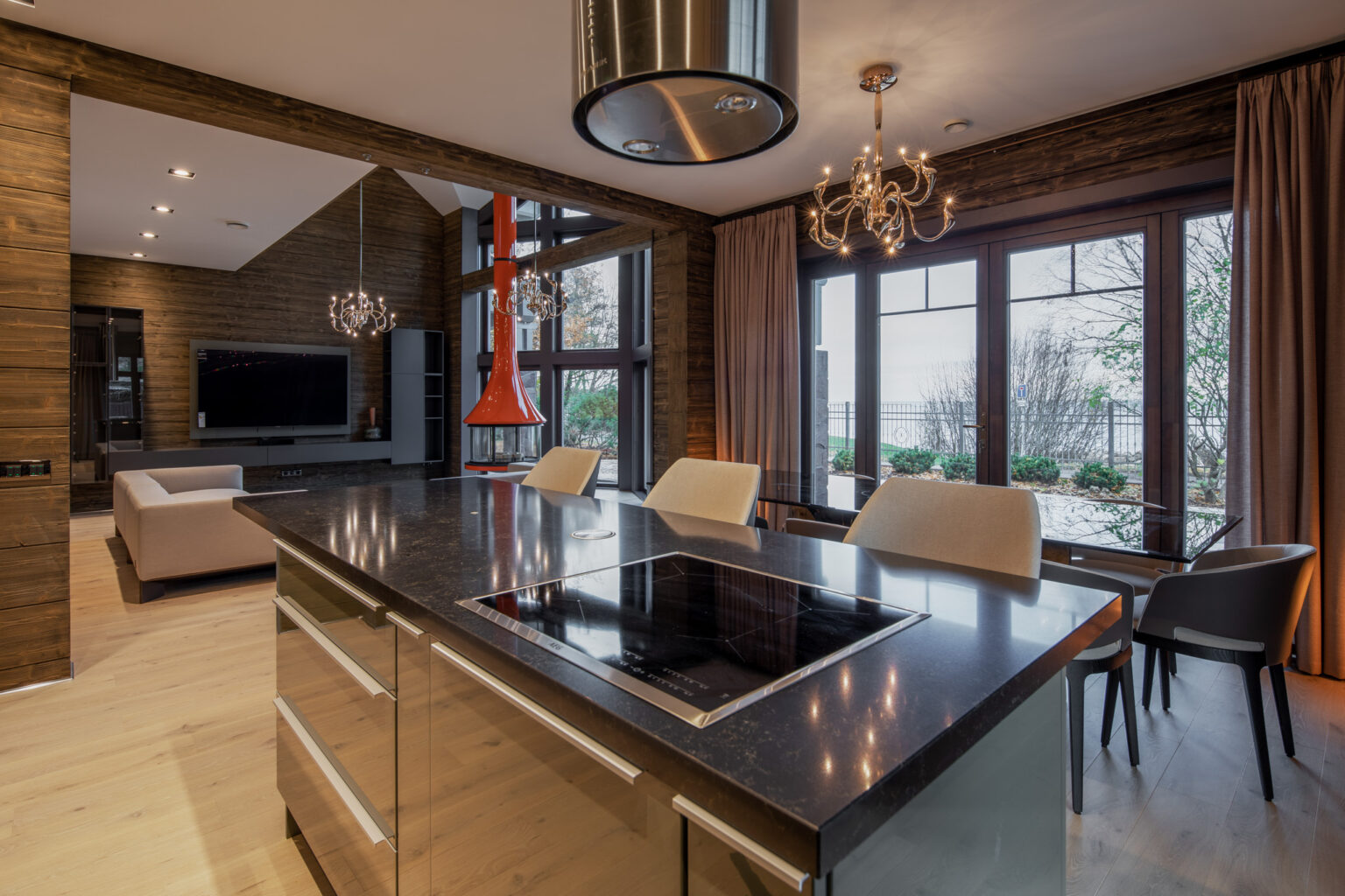 Міцні стіни з великими вікнами в поєднанні з дерев’яними балками надають цьому проекту сучасного вигляду. Незважаючи на видиму легкість і прозорість, конструкція будинку є логічно точною, міцною і довговічною.