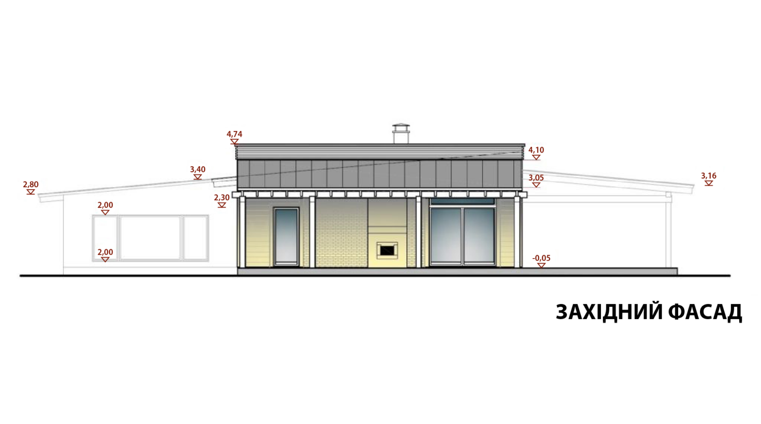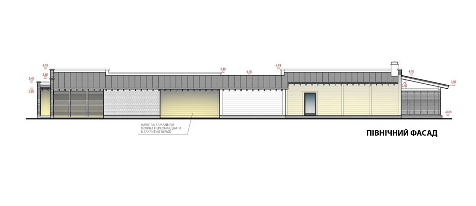 Технічні приміщення та навіси для автомобілів на затіненому коридорному боці будівлі ззовні оздоблені кам’яним облицюванням.